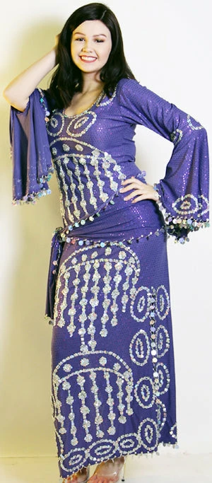 Galabeya dress in vibrant purple and adorned with silver sequins.