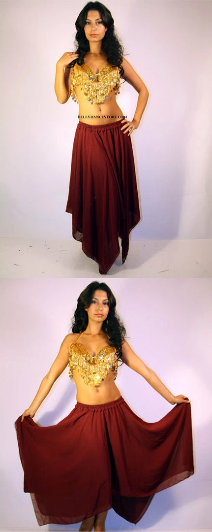 Burgundy Double layer skirt with no slit.