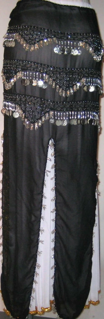 Black Sheer With Silver Beads And Coins Hip Scarf