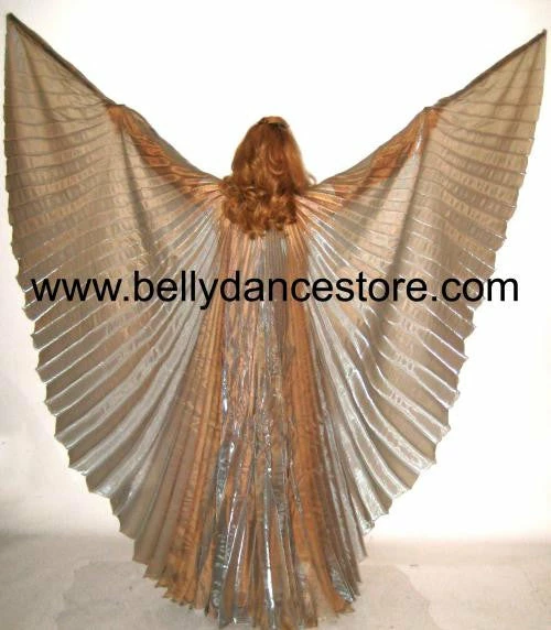 Glistening Sheer Silver Wings With Brown Highlights Have A Neck Strap That Closes In The Front Which Makes Them Easy To Take Off While Performing. Wings Make Complete Circle And Have Two Rods To Help With Movement. Also Includes Free Carrying Bag.