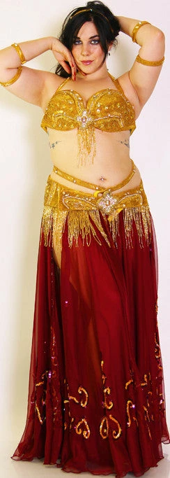 Pharaonics Straps Bra And Belt Set Is Shaped Beautiful For A Flattering Versatile Fit And Beaded Full Retro Style With Bugle Beads And Rhinestones For The Most Sumptuous Texture And Shine. Halter Bra And Two Piece Belt Are Both Finished With A Flower Motif, Centered. Two Piece Belt Comes With Optional Waist Strap That Is Easy To Adjust. Also Included For Small Accessories (Arm/Ankle) And A Head Band.Bra Is Not Padded.