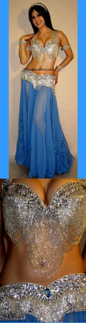 Enjoy The Versatility Of Pharaonics Of Egypt Glorious Great Loops Bra And Belt Set. Fully Sequined And Jeweled For Your Sparkling Pleasure! Large And Small Crystals, Rhinestones And Matching Beads Compliment The Curved Edges Of The Belt As Well As Your Own Curves. The Luxurious beading Is Shaped To Flatter And Move With Grace. This Halter Bra Comes With A Two Piece Belt, For Maximum Size Versatility Along With Sequined Arm Bands And Head Band. This Set Combines Beautifully With Skirts Of All Styles (Sold Separately) So You Can Maximize Your Wardrobe Options. Available In Gold, Silver And Many Other Colors.